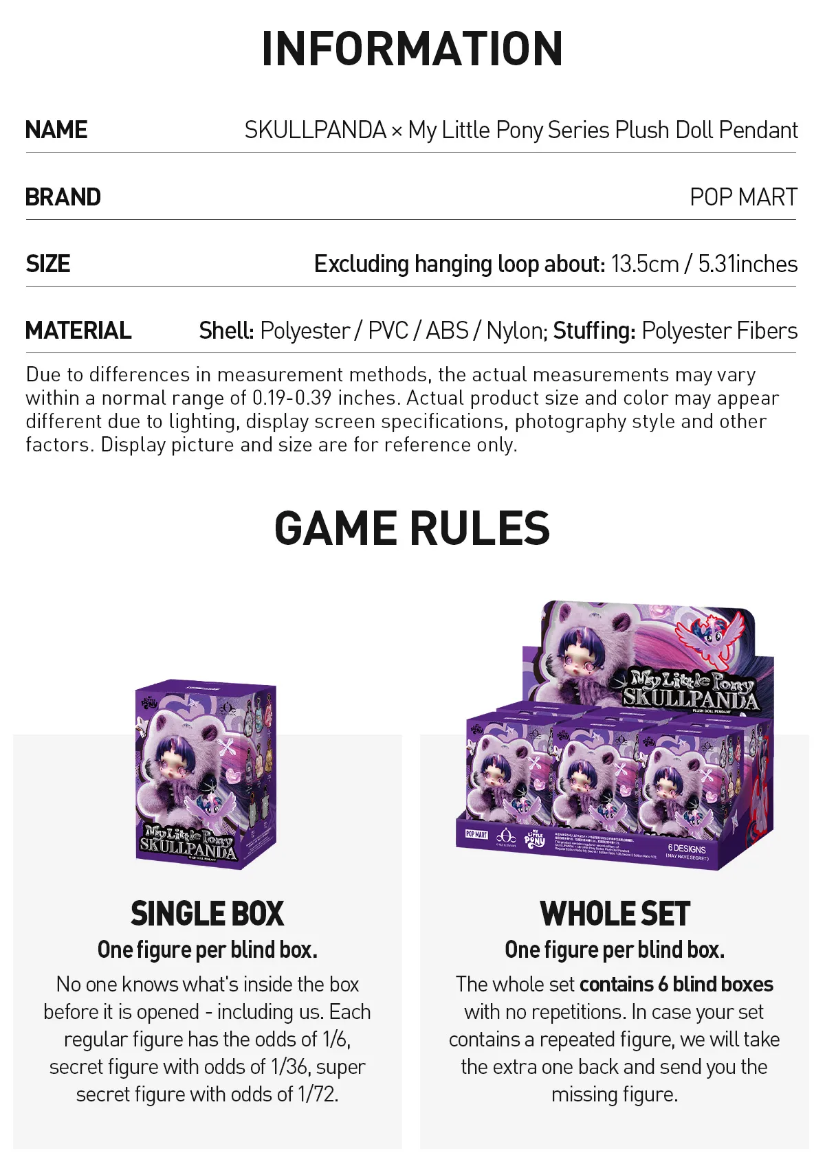 【Hot】SKULLPANDA × My Little Pony Series Plush Blind Box