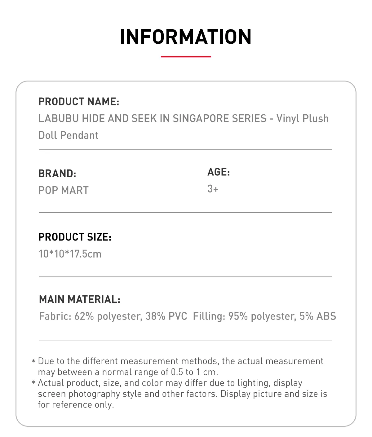LABUBU Hide and Seek in Singapore Series-Vinyl Plush Doll Pendant, Limited Edition