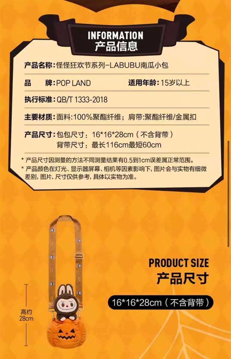 POPMART The Monster labubu pumpkin bag Halloween