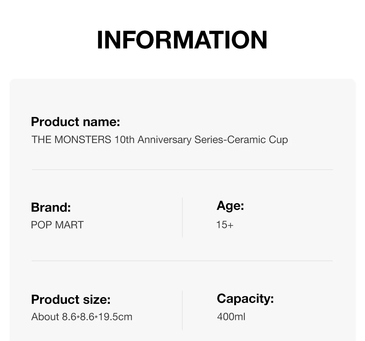THE MONSTERS 10th Anniversary Series Ceramic Water Cup