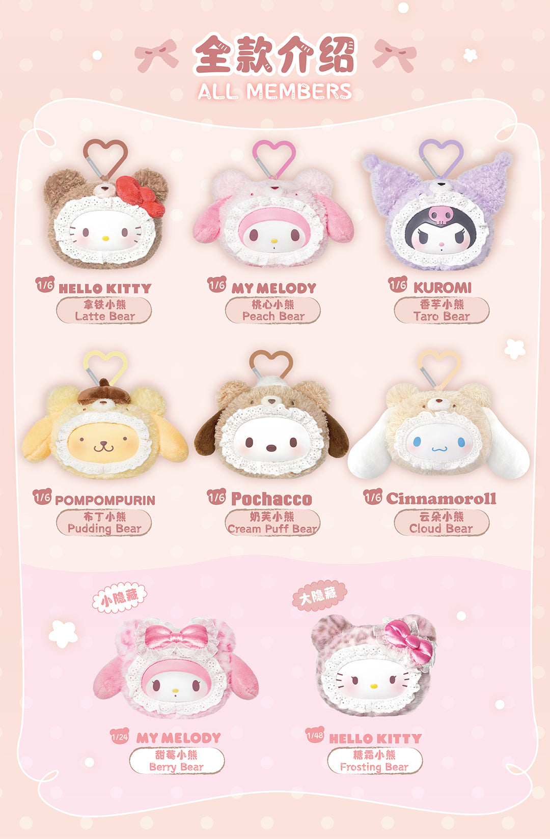 TOP TOY SANRIO Fluffy Teddy Bear Plush Keychain Gift Blind Box